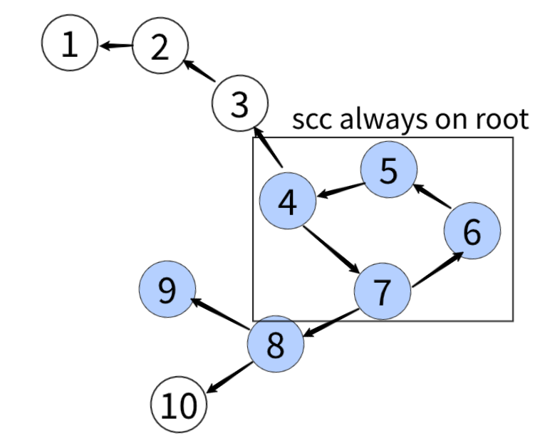 따라서 컴포넌트의 최하위 노드들끼리만 사이클을 이룰 수 있다.