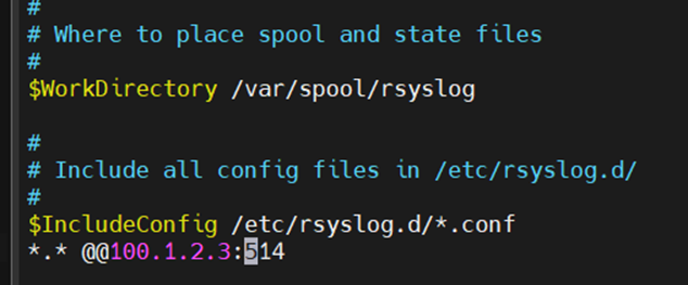 이 설정파일에 *.* @rsyslog-server-ip-address:514 를 집어넣는다.