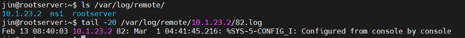 이제 /var/log/remote 폴더에 자신과 ns1(ftp서버의 폴더가 생성되어 있다.)