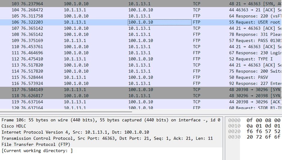 여기서 기존의 GNS 세팅을 그대로 사용해서 100.1.0.10인 FTP 서버를 대상으로 SLA를 진행하였는데,
