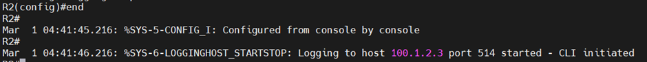 End로 conf t를 나가면 log가 전송되었다는 메시지가 뜬다.