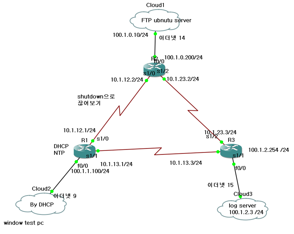 Shutdown으로 끊는 부분은 R1이 아닌 R2의 s1/0, ISP의 연결이 끊긴 느낌으로