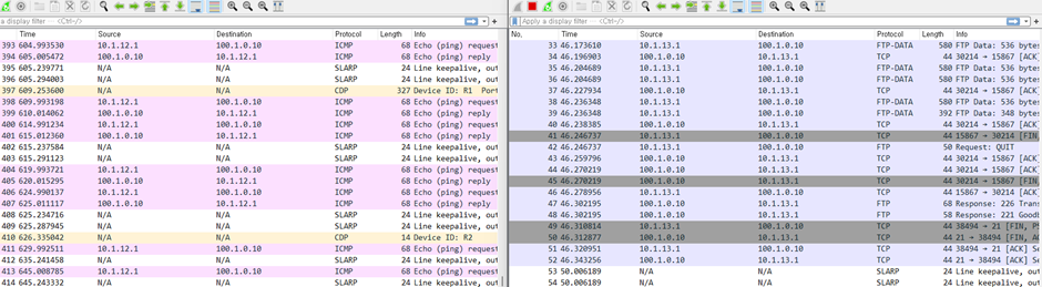 ICMP 응답이 안 오자 백업 경로를 활성화시켜 백업 FTP를 보내는 것이 확인된다
