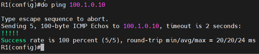 action 4 cli command "no ip route 100.1.0.0 255.255.255.0 10.1.12.2" #best path 삭제