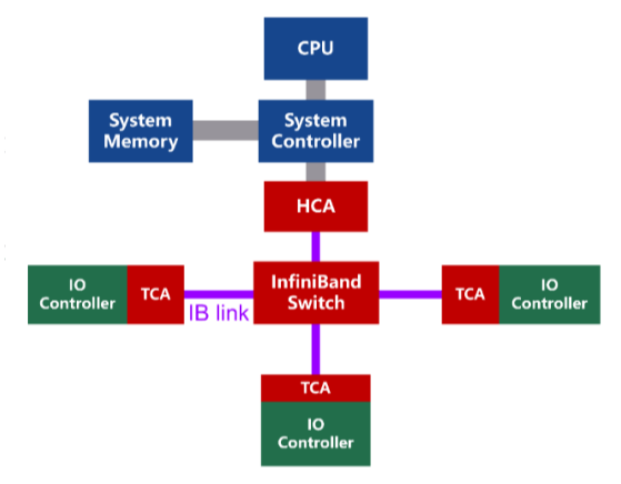 하지만 InfiniBand에서는 CA(Channel Adapter) 간에 point-point와 양방향 통신이 가능하여 더 높은 속도를 제공할 수 있다.