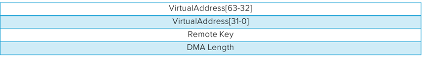 이때 전송되는 RDMA 정보에는 대상의 가상 주소와 메모리 키, 그리고 읽고 쓸 데이터의 길이(DMA Length)가 포함된다.