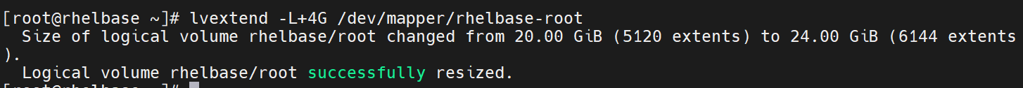 lvextend -L+4G /dev/mapper/rhelbase-root
