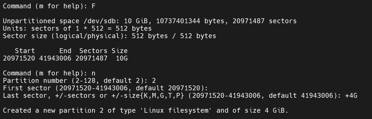 용량이 남아있는 /dev/sdb를 fdisk를 통해 /dev/sdb2를 생성해 주자.